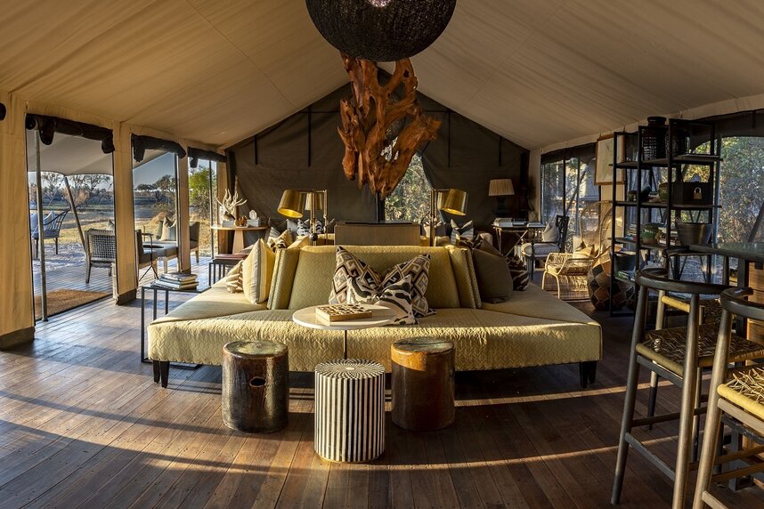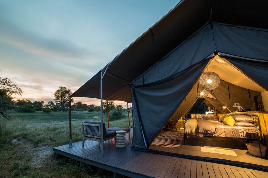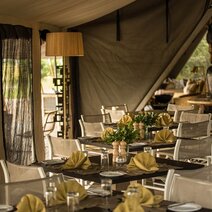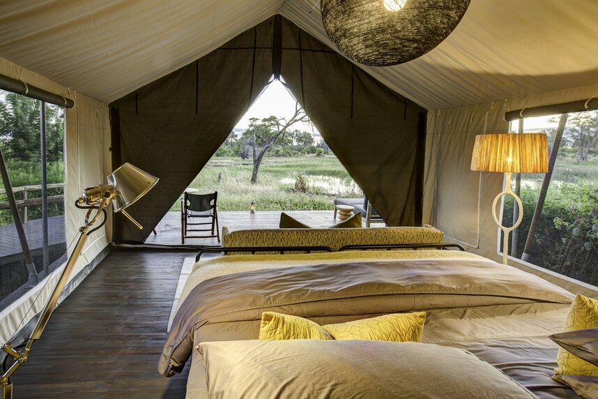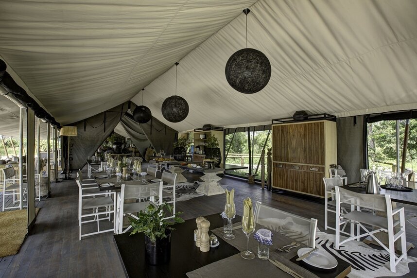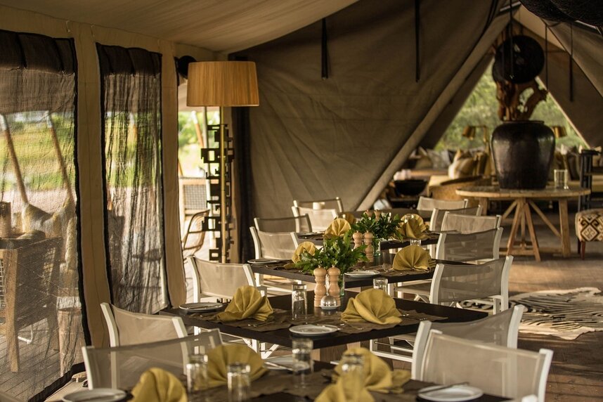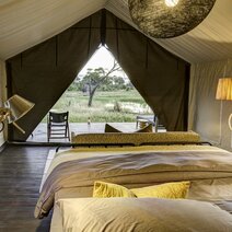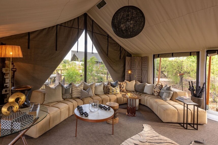 Die Unterkünfte bestehen aus zehn Luxussafarizelten, inklusive zweier Familieneinheiten. Die Zelte sind mit jeweils einem eigenen Bad, Innen- und Außenduschen ausgestattet. Sie sind leicht erhöht auf hölzernen Plattformen gebaut und im klassischen Safaristil dekoriert.