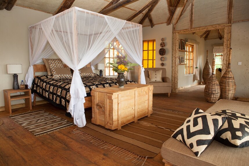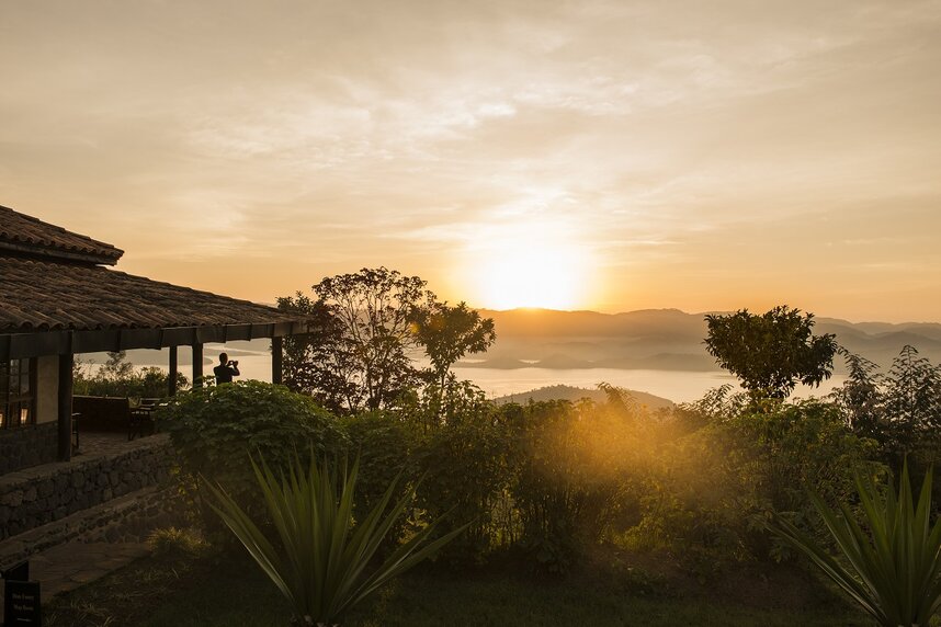 Die kleine Ökolodge auf 2.300m Höhe hat den wohl schönsten Rundum-Blick auf die Seen Ruhondo, Burera und zu den Virunga Bergen. Der Park National des Volcans ist etwa 40 Minuten entfernt. Im Haupthaus befindet sich die große Lounge mit Speisebereich und einem offenen Feuerplatz. Hier serviert das herzliche Personal die Mahlzeiten. Guy Krenzer und Stephane Chicheri, die renommierten Küchenchefs vom Le Nôtre Restaurant in Paris, haben zusammen mit dem Küchenchef der Virunga Lodge neue ruandisch inspirierte Speisen konzipiert. Freuen Sie sich auf viele kulinarische Höhepunkte. Am Abend verbreitet das Feuer des Kamins in der Lounge wohlige Wärme und eine angenehme Stimmung. Im "Ikirunga Spa" können Sie bei einer Massage entspannen (eine 30-minütige Massage ist pro Gast und Aufenthalt inklusive). Die Lodge wird mit Solarstrom betrieben.