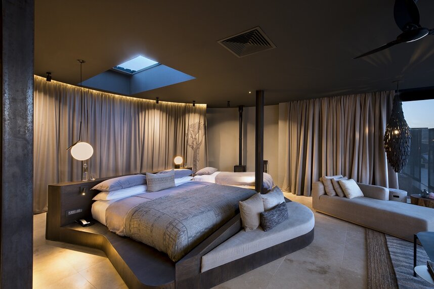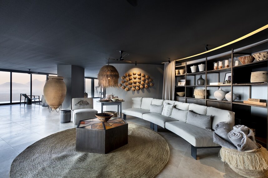 Um das Maximum an Privatsphäre zu gewährleisten sowie die Pracht und Einsamkeit der Wüste perfekt einzufangen wurde das Camp mit nur zehn Suiten und einer Familiensuite aus Stein und Glas errichtet. Alle Suiten sind klimatisiert und verfügen über eine private Veranda, einen privaten Plungepool und sind mit diskreten Musiksystemen und individuell gestalteten persönlichen Bars ausgestattet. Die Außendusche und das Oberlicht zur Sternbeobachtung runden das einzigartige Ambiente ab. Die Familiensuite besteht aus zwei Suiten und bietet ein ideales familiäres Umfeld: Beide Suiten sind durch einen überdachten Gang miteinander verbunden und verfügen in der Mitte über eine private Lounge mit einem privaten Essbereich.