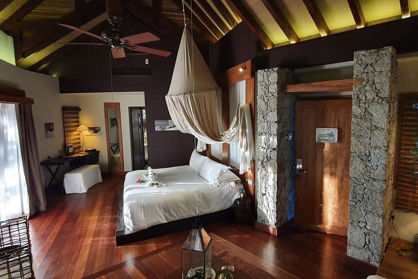 La Digue ist ein idyllischer Ort, an dem die Zeit stehengeblieben zu sein scheint – zweifellos eine der schönsten Seychelleninseln. Mehrmals täglich bringt Sie eine Fähre ab Praslin in 15-20 Minuten auf die Insel. Das Resort liegt harmonisch eingebettet zwischen dem Ozean und einer Hügellandschaft. Einsame Strände und traumhafte Buchten sind leicht zu Fuß, mit dem Ochsenkarren oder per Rad erreichbar. Für kulinarische Höhepunkte sorgen zwei Restaurants sowie zwei Bars. "Le Combava" auf der Dach terrasse serviert feinste Speisen, im "Santosha" wird mit herrlichem Blick über den Indischen Ozean internatio nale und kreolische Küche gereicht. Hoch oben zwischen massiven Granit felsen thront das "Eden Rock Spa". Eine grandiose Aussicht bietet auch der Infinity Pool. Im gesamten Resort steht Ihnen gratis WLAN zur Verfügung.