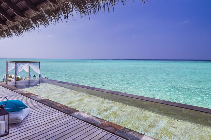 Klare Linien und natürliche Materialien prägen das elegante Design der Villen. Abgeschirmt durch tropisches Grün liegen die Beach Villen jeweils mit oder ohne eigenen Pool (135-165 m²) direkt an einem eigenen Sandabschnitt mit herrlichem Blick auf den Ozean. Die Water Villen (149 m²) liegen über der türkisfarbenen Lagune und sind auf Wunsch ebenfalls mit eigenem Pool buchbar. Der Blick von Ihrem Sonnendeck aus ist schlichtweg atemberaubend.