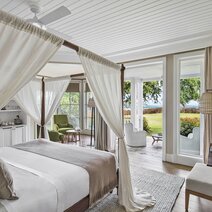 Alle Suiten verfügen über ein großes Bad mit separater Dusche, kostenloses WLAN, Klimaanlage, Safe, TV, Video on demand, Telefon, Kaffee-/Teezubereiter, Nespresso-Maschine, Balkon oder Terrasse sowie einen Butlerservice. Die Suiten sind u.a. unterteilt in Gardenview Suiten, Seaview Suiten und Beachfront Suiten (alle jeweils 62 m²). Alle Suite-Kategorien sind mit Aufpreis im Adults-Only Bereich buchbar.