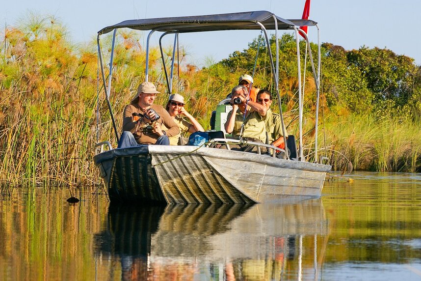 Anreise per Sportflugzeug von Maun in ca. einer Stunde, von Kasane in 2 Stunden zur Xugana Landebahn, von hier kurzer Fahrzeugtransfer zur Lodge.