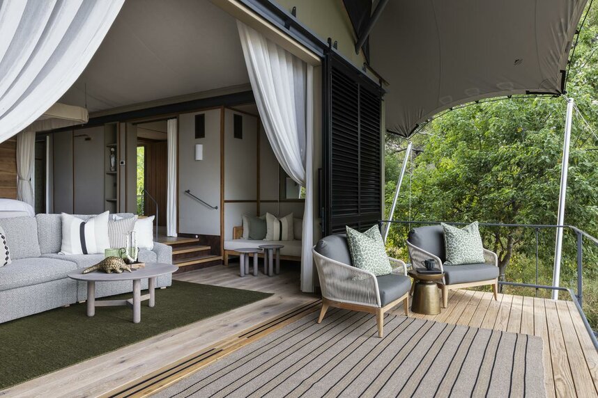 Das Camp verfügt über acht komfortable Zelte mit Dusche und WC und ist mit spektakulären Tierfotografien ausgestattet, so hat jedes Zelt seinen eigenen Charakter. Alle Zelt-Suiten wurden Anfang 2025 komplett neu renoviert und auf 113m² vergößert. Die Zelte sind auf Plattformen errichtet und haben alle eine komfortable Aussichtsveranda.