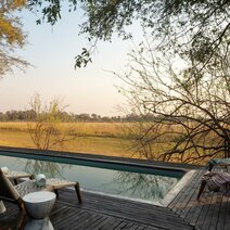 Chitabe liegt in einer besonders reizvollen Landschaft am Rande des Okavango Deltas mit Auen, Wasserwegen sowie trockenen Akazien und Mopanewäldern. Das Gebiet lockt eine Fülle von Tieren an und ist eine der wenigen Regionen, in denen Sie die seltenen Wildhunde beobachten können. Das Haupthaus ist über Holzstege mit den Gästezelten verbunden. Neben Restaurant und Lounge lädt abends die gut ausgestattete Bar, die aus einem einzigen Baumstamm gehauen wurde, zum Sundowner ein. Ebenfalls im Hauptgebäude befindet sich ein kleiner Pool mit toller Sicht auf die Ebenen vor dem Camp, sowie eine Feuerstelle.