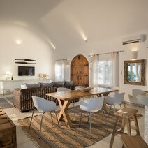 Die fünf Villa Suiten mit Meerblick sind exklusiv ausgestattet mit privater Terrasse. Alle Zimmer tragen unterschiedliche Namen, sind mit einem Kingsize-Bett ausgestattet und blicken auf den Indischen Ozean. WLAN und Satellitenfernsehen sind ebenfalls verfügbar. Santorini Mozambique bietet darüberhinaus zwei Villen zur Exklusivnutzung an.