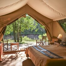 Das Camp verfügt über 25 komfortable und geschmackvoll eingerichtete Zelte im klassischen Safaristil mit en-suite Bad und einer schönen Veranda. Genießen Sie beim Frühstück den malerischen Ausblick über den Mara Fluss und die weite Ebene.