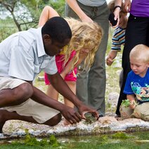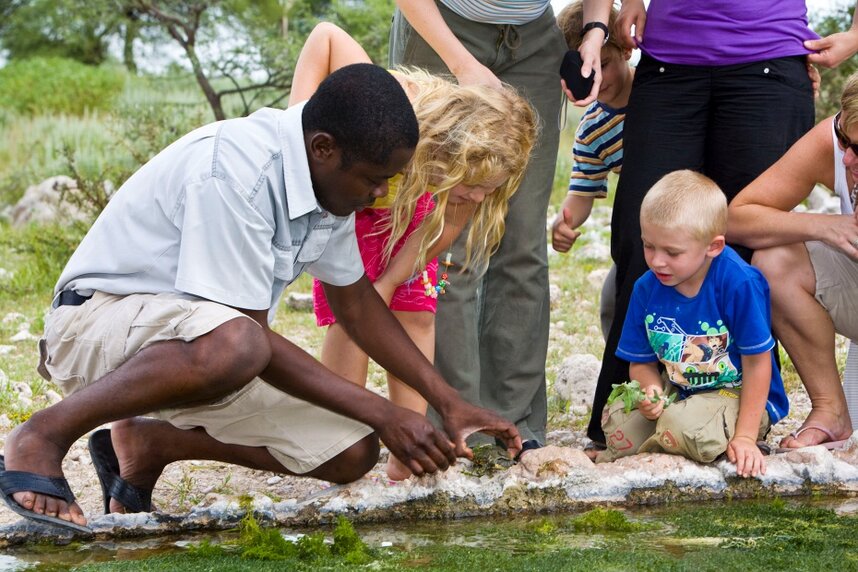 Das Mushara Bush Camp ist ideal für Familien und Gäste, die ein naturnahes Safarierlebnis suchen. Das Camp ist auf die Wünsche Ihrer Kinder spezialisiert und kinderfreundlich ausgerichtet. Die Unterkunft ist schlicht aber elegant und modern eingerichtet und liegt direkt in einer lichten Buschlandschaft im Mushara Reserve. Das große halboffene Hauptgebäude und die weitläufige Lounge bietet zahlreiche Sitzgelegenheiten, die zum entspannten Verweilen einladen, sowie Esstische für die Mahlzeiten. Der Kontrast zwischen der Verwendung natürlicher Baustoffe, wie z.B. beim Reetdach des Hauptgebäudes, den modernen Formen im Inneren und der schlichten Einrichtung zeichnet das Mushara Bush Camp nachhaltig aus. Vor der Lounge erstreckt sich ein gepflegter Garten mit Veranda, gemütlicher Lagerfeuerstelle und dem Swimmingpool. Für Kinder gibt es verschiedene Spielsachen im Loungebereich und ein großer Abenteuerspielplatz, eine Sandgrube sowie ein separater Kinderpool im Garten. Kinderbetreuung wird vom Camp aus auf Anfrage gestellt.