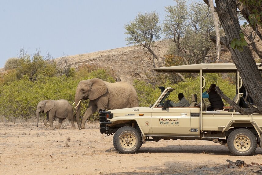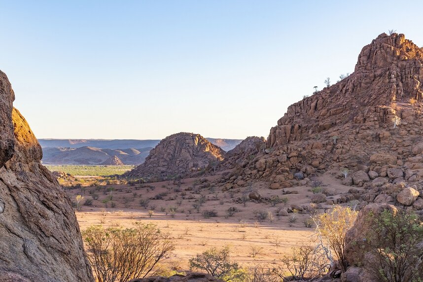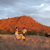 In endloser, unberührter Wildnis mit faszinierender Wüstenlandschaft liegt das Mowani Mountain Camp, das 2021 neu renoviert wurde. Durch die etwas erhöhte Lage genießen Sie einen sehr guten Ausblick über die uralte Landschaft mit ihrer ausgeprägten Wüstenflora und -fauna. Das Aba-Huab-Tal in der Nähe des Camps ist Lebensraum der Wüstenelefanten und bietet guten Chancen, diesen Tieren im Rahmen einer geführten Pirschfahrt zu begegnen. Im eleganten Haupthaus befinden sich Rezeption, Bar, Speisebereich sowie eine Lounge mit Sicht auf ein Wasserloch. Entspannung finden Sie am Felsenpool mit Wasserfall und Sonnendeck oder abends an der Boma. Das Mowani Mountain Camp hat außerdem den wohl schönsten Sundowner-Platz Namibias zu bieten. Oberhalb Mowanis ist eine Bar auf einer großen Felsenkuppe eingerichtet, von wo aus Sie beobachten können wie sich langsam die Hügelwelt um Sie herum purpurrot verfärbt und die Sonne hinter den Vulkangebirge des Damaralandes verschwindet.