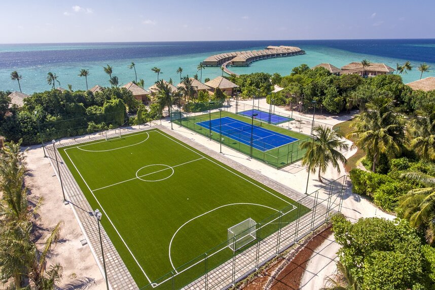 Für aktive Gäste steht ein umfangreiches Sport- und Unterhaltungsprogramm zur Verfügung: Neben einem modernen Fitnesscenter gibt es sowohl einen Tennis-, einen Badminton- sowie einen Fußballplatz, als auch den "Games Room" mit Tischtennisplatte, Billardtisch und Flipperautomat. Ein unendlicher Spielplatz ist natürlich auch der Ozean direkt vor Ihrer Haustüre. Erkunden Sie die Unterwasserwelt des Lhaviyani Atolls bei einer Schnorcheltour oder einem Tauchausflug, geben Sie Gas auf einem Jetski, oder lassen Sie es in einem Kayak etwas gemütlicher angehen.