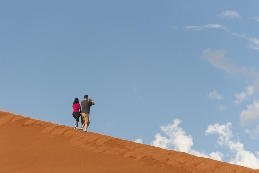 In der Nähe der spektakulären Dünen von Sossusvlei im privaten 37000 Hektar großen Kulala Wilderness Reservat liegt das Kulala Adventurer Camp. Es besteht aus 5 einfachen Kuppelzelten und ist der perfekte Ausgangspunkt für Touren zu den Dünen von Sossusvlei, die am frühen Morgen in rotem Licht erstrahlen. Die Anfahrt erfolgt durch das private Tor, der große Umweg zum offiziellen Parkeingang entfällt hier. Mit etwas Glück entdecken Sie Strausse, Springböcke, Oryx und auch Löffelhunde, Schabrackenschakale und Kapfüchse. Das Camp bietet Ihnen ein einfaches, aber dennoch sehr komfortables und gepflegtes Camping-Erlebnis. Abends werden um das Lagerfeuer herum köstliche Mahlzeiten zubereitet - der Essbereich des Camps steht somit unter dem Sternenhimmel Namibias und verstärkt damit das "Camping Wild"-Gefühl.