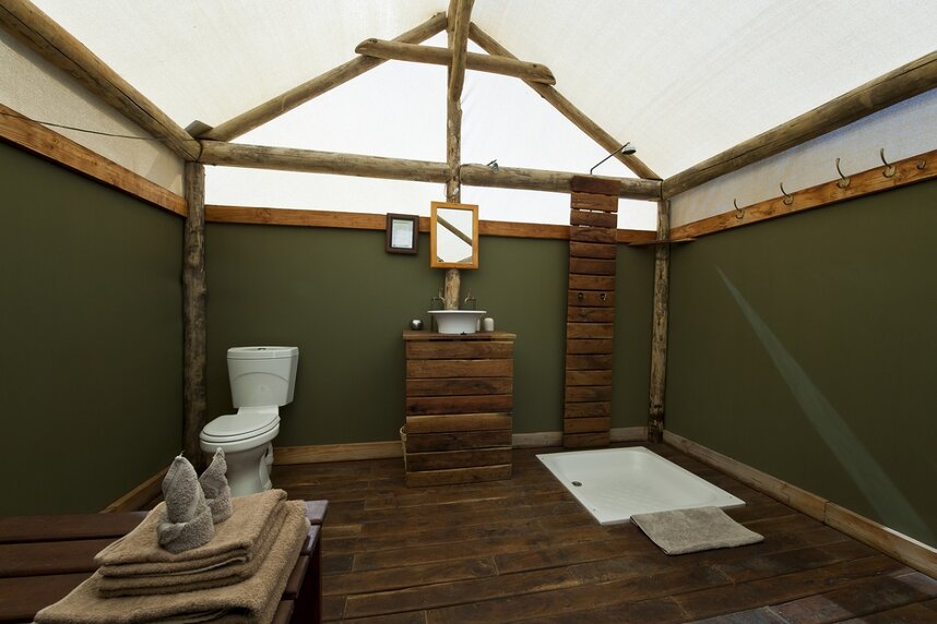 Im Kulala Adventurer Camp sind Sie in semi-permanenten, gut belüfteten Kuppelzelten von 3 x 3 Meter, mit einer Miniveranda untergebracht. Die Veranda der Zelte ist leicht erhöht und mit Schatten spendenden Tüchern bedeckt. Die Kuppelzelte sind groß genug, um darin stehen und sich leicht bewegen zu können. Auf der Rückseite des Zeltes befindet sich das Open-Air-Bad unter freiem Himmel und verfügt über eine Spültoilette, ein Waschbecken und eine Dusche mit fließendem kalten und warmen Wasser.