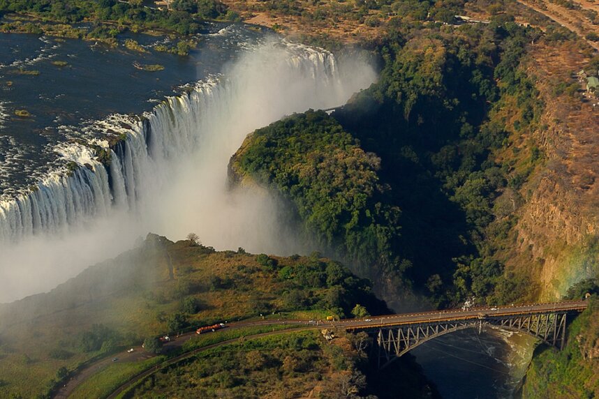 Nach Ihrer Ankunft werden Sie zur "Grande Dame", dem Victoria Falls Hotel gebracht. Von der Terrasse aus erblicken Sie schon die imposante Gischt der Wasserfälle, die zum UNESCO Weltnaturerbe gehören. Ein besonderes Erlebnis ist ein Helikopterflug über die Fälle und eine Sunset Cruise auf dem Zambezi Fluss (optional).