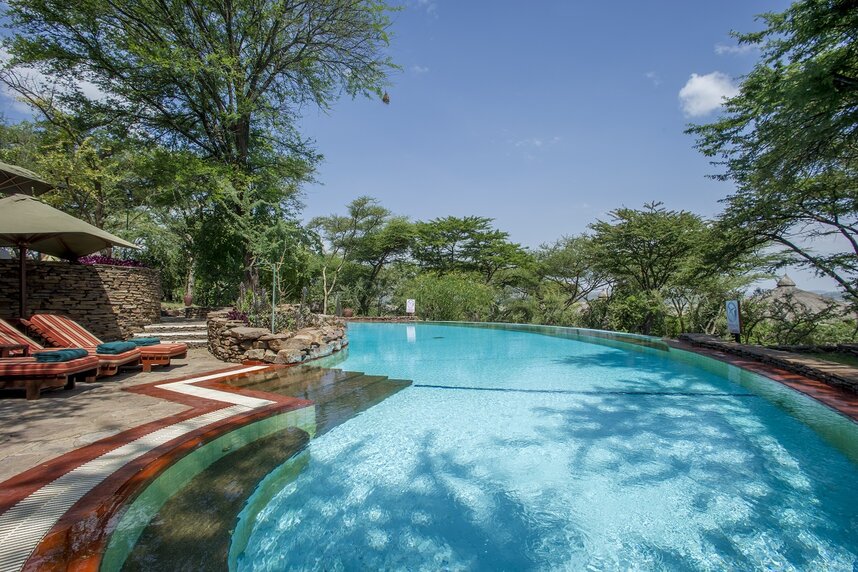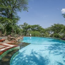Die exklusive Lodge liegt im Zentrum der Serengeti auf einem dicht bewachsenen Hügel mit üppigem Baumbestand in der Nähe von Seronera. Sie ist die vermutlich die größte, feste Unterkunft in der Gegend. Am Rand des Berghügels wurde ein Infinity Pool erbaut, von dem aus Sie über die Weiten der Serengeti blicken. Das Dekor ist afrikanisch inspiriert mit graphischen Mustern und reichen Schnitzereien. Das mit Stroh gedeckte Hauptgebäude ist im traditionellen Stil erbaut und verfügt über ein Restaurant mit Runddach, offener Feuerstelle, Grillstation und Außenterrasse.