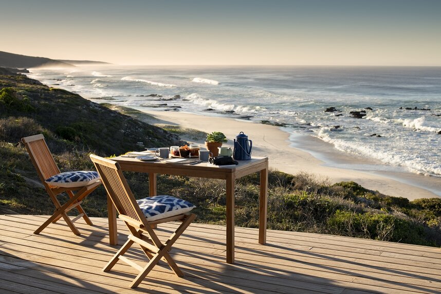 Die Lekkerwater Beach Lodge liegt in der abgelegenen östlichen Region des traumhaft schönen De Hoop Naturreservats. Während der Sommermonate (November bis April) sind die Tage lang, sonnig und warm und der blaue Himmel erstreckt sich soweit das Auge reicht. Es ist eine wunderbare Zeit, um bei Ebbe zu schwimmen, am Strand und in den Hügeln zu spazieren - und die langen, faulen Sommerabende zu genießen. Die Wintersaison bringt die ersten Wale, die normalerweise Ende Mai oder Juni in der Bucht vor Lekkerwater ankommen. Die Walbeobachtungssaison kann sich bis in den November erstrecken, aber die besten Monate sind August, September und Oktober, in denen in der De Hoop Bay 300 bis 1100 Wale vorkommen können. Es ist magisch, die Delfine von der Veranda aus zu beobachten. Spaziergänge entlang der sanften, mit Fynbos bedeckten Hügel und Schluchten sind immer interessant. Landtiere wie Eland werden oft gesichtet, ebenso wie Bontebok und Strauß. Ein weiteres Highlight ist der Besuch einer der vielen Höhlen in der Umgebung mit Muschelmitten und anderen Zeugnissen unserer frühen Vorfahren. Es gibt auch eine Reihe von Höhepunkten bei der Vogelbeobachtung, darunter die Möglichkeit, den blauen Kranich, den Nationalvogel Südafrikas zu entdecken. Der Hauptbereich hat ein umlaufendes Deck mit der gleichen herrlichen Aussicht, wie die der Zimmer. Eine interaktive, offene Küche ist das Herzstück der Lodge und die Gäste können drinnen oder draußen am Strand speisen.