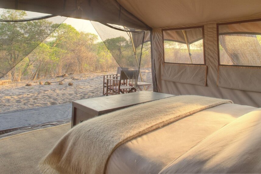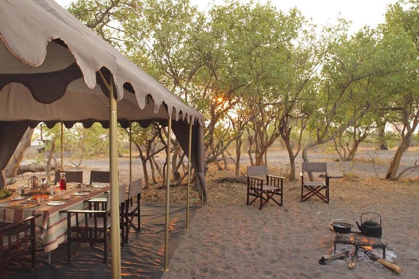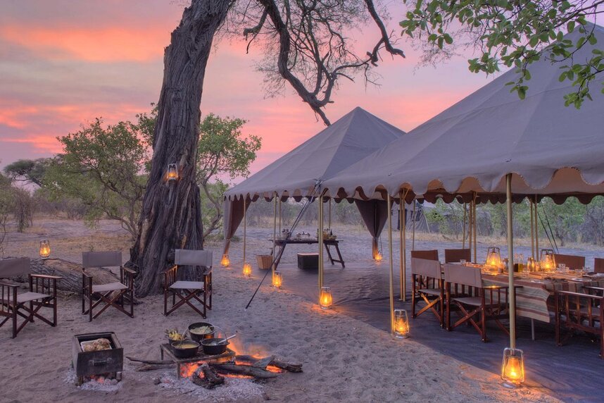 Der Savute Kanal verbindet das Flusssystem des Linyanti mit den Trockengebieten von Savute. Meist ist dieser Kanal trocken, daher ist den Savute Ebenen ein weites Grasland entstanden. Die großen Zebra- und Antilopenherden bieten hervorragende Jagdmöglichkeiten für Raubtiere wie Löwen, Hyänen, Leoparden und Geparden. In den letzten Jahren füllte sich der Kanal wieder mit Wasser und hat so ein neues Ökosystem geschaffen. Neben den luxuriösen feststehenden Lodges hat andBeyond im Chobe und Savute Nationalpark die Lizenz für die etwas rustikaleren Under Canvas Camps, die alle fünf bis sechs Tage an verschiedenen Plätzen der beiden Nationalparks errichtet werden. Sie sind nicht eingezäunt, also ganz nah an den Geschehnissen im afrikanischen Busch. Die Mahlzeiten werden im Speisezelt mit Lagerfeuerplatz oder bei gutem Wetter unter dem freien Sternhimmel eingenommen. Beide Camps bieten Pirschfahrten an, im Chobe Under Canvas stehen zusätzlich Bootausflüge auf dem Programm und es werden mehrtägige Fotosafaris angeboten.