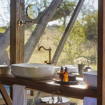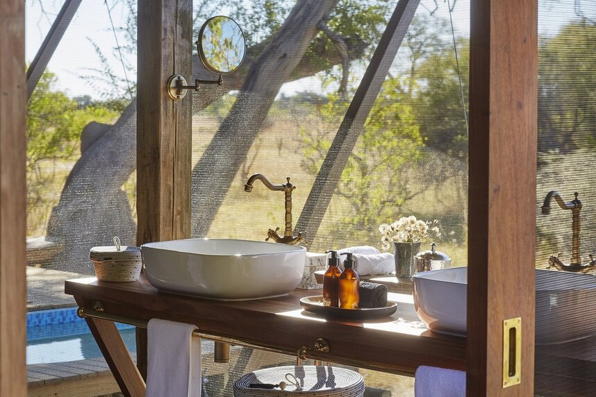 Im über 200.000 Hektar großen Khwai-Privatreservat fügt sich das Tuludi Camp inmitten der unberührten Wildnis in die zauberhafte Landschaft ein. Das Camp ist umgeben von smaragdgrünen Wäldern und Flussauen, die sich so weit das Auge reicht über die Weiten des Khwai-Privatreservates erstrecken und damit alle Stars der Safari-Show anziehen. Das Tuludi Camp selbst wurde im Baumhausstil errichtet und vermischt traditionelle Einflüsse mit zeitgenössischen Elementen und bildet damit eine exklusive Oase, in welche man nach einem ereignisreichen Safaritag gerne zurückkehrt.