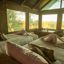 Südöstlich des Okavango Deltas mit Blick auf den Gomoti-Fluss befindet sich das Rra Dinare Camp im berühmten Moremi-Wildreservat. Die Hauptbereiche des Camps bieten Ihnen zahlreiche Möglichkeiten sich zu entspannen und die wunderschöne Wildnis zu genießen. Nach einer Pirschfahrt durch das Moremi-Wildreservat können Sie in der Unterkunft den Tag am Swimmingpool, in der Lounge oder in der Bar mit integriertem Restaurant ausklingen lassen.