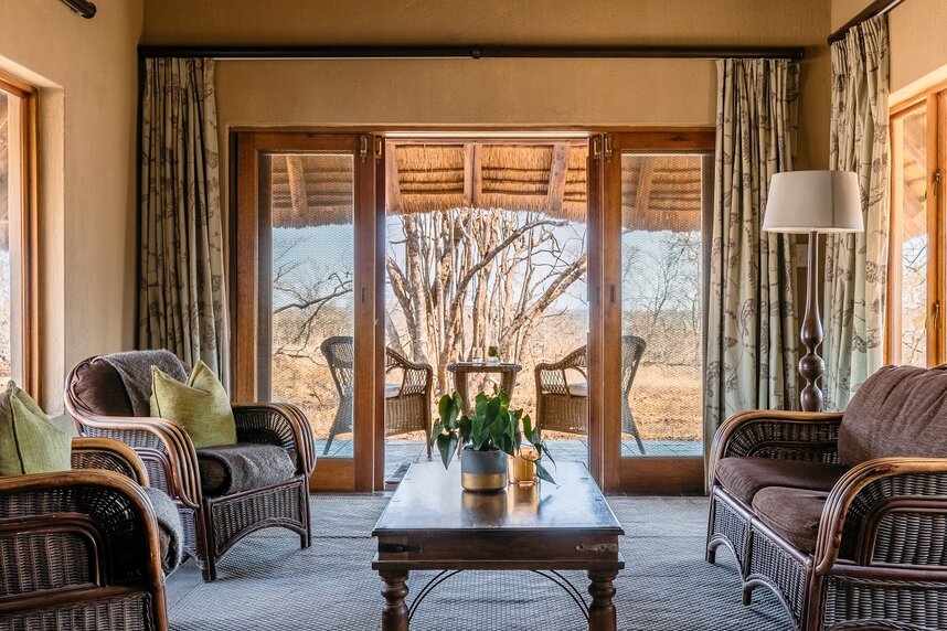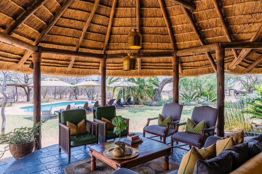 Die Jackalberry Lodge ist ein Ort der Entschleunigung. Vom Hauptbereich aus sind oft Sichtungen von Elefanten und Antilopen am nahe gelegenen Wasserloch möglich. Die elegante Lodge verfügt über einen offenen Wohn- und Essbereich, eine Bibliothek und eine Boma. Das Abendessen wird, wenn es das Wetter erlaubt, in der Boma am Lagerfeuer serviert. Ein Pool sorgt für Erfrischung an heißen Tagen.