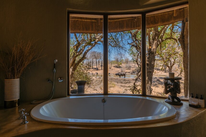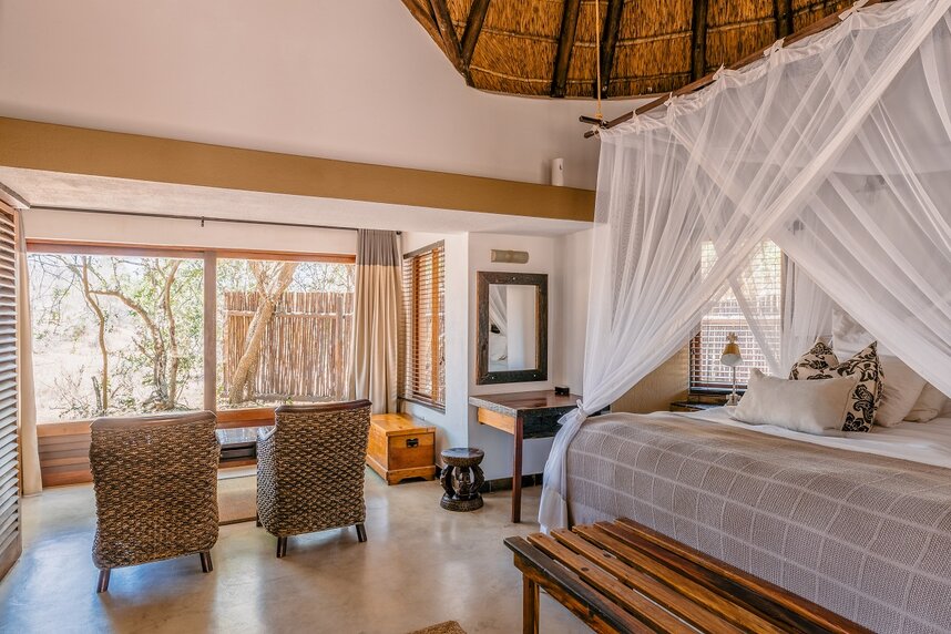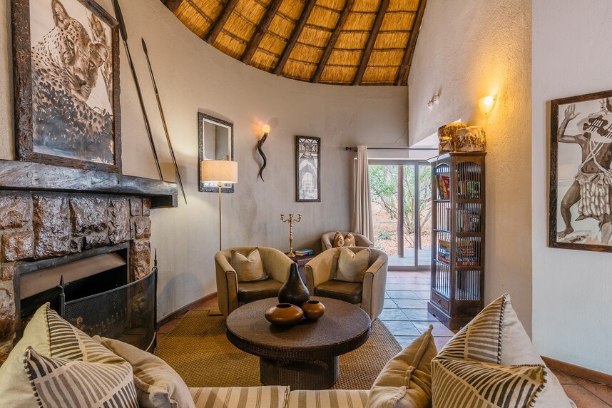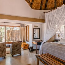 Die drei Luxury Suiten bieten eine hervorragende Aussicht sowohl vom Schlafzimmer als auch vom Bad. Steinerne Kamine sorgen für romantische Wärme an kühlen Tagen. Die Suiten sind klimatisiert und in natürlichen Farben im afrikanischen Stil eingerichtet.