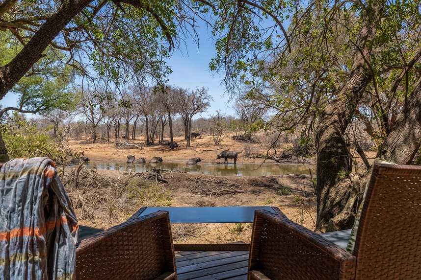 Das erhöhte Deck im Hauptbereich hat einen spektakulären Blick auf ein Wasserloch. Serondella ist eine gemütliche Lodge, die nur bis zu acht Gäste gleichzeitig beherbergen kann, so dass ein ruhiger Aufenthalt garantiert ist. Es gibt ein Aussichtsdeck und einen Pool zum Erfrischen an heißen Tagen.