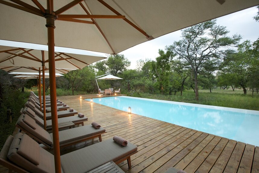 Das 15.000 ha große Kapama Private Game Reserve befindet sich im Greater Kruger National Park. Im Reservat leben die "Big 5" und eine Vielzahl anderer Tiere. Genießen Sie den herrlichen Blick auf das natürliche Wasserloch, das den ganzen Tag über von Tieren besucht wird, während Sie Ihren Lieblingscocktail auf der Holzterrasse neben dem einladenden Pool oder in der elegant eingerichteten Lounge genießen. Das Dekor ist modern, zurückhaltend und von der Natur inspiriert. Der Weinkeller präsentiert die feine südafrikanische Sammlung hinter rahmenlosem Glas. Die traditionelle Boma im Freien ist bei schönem Wetter die bevorzugte Kulisse für das Abendessen. Von Feuerlicht und Sternenhimmel beleuchtet, genießen die Gäste eine abwechslungsreiche und geschmackvolle Küche, die von Köchen direkt vor ihnen zubereitet wird.