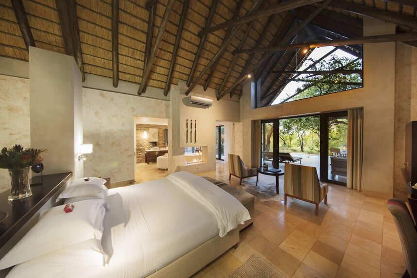 Alle 15 Suiten im Southern Camp verfügen über ein eigenes Bad mit Panoramafenstern, um die umliegende Wildnis zu genießen. Private Terrassen bieten die Möglichkeit, entspannende Sundowner zu genießen und gleichzeitig Tiere zu beobachten.