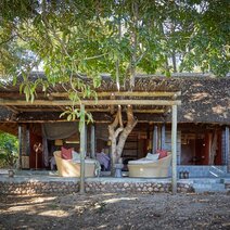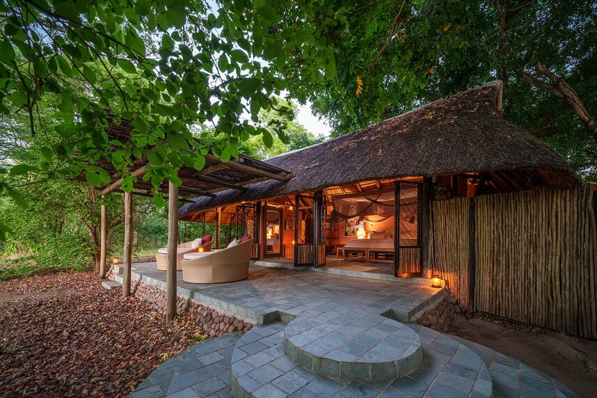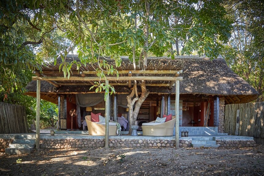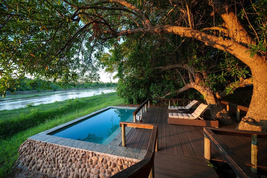 Das Kapamba Bush Camp bietet vier großzügig gestaltete Chalets mit eigenem Bad. Alle Zimmer haben eine private Veranda mit Blick auf den Fluss sowie ein Steintauchbecken zur Entspannung und Abkühlung nach einem aufgregenden Safaritag.