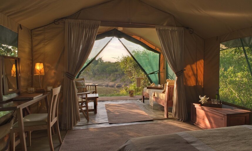 Das Camp liegt im Herzen der Masai Mara am Talek Fluss. Im Sommer überqueren hier die großen Migrationsherden die reißende Strömung. Besonders spektakuläre Flussüberquerungen finden am Mara River, etwas nördlich des Camps, statt. Während der übrigen Zeit sorgt das beheimatete Wild für abwechslungsreiche Pirschfahrten. Ihre Mahlzeiten nehmen Sie im nostalgischen Hauptzelt ein, ein erhöhtes Aussichtsdeck am Flussufer sorgt auch während der Mußestunden für immerwährende Spannung. Das gesamte Camp integriert sich aufgrund der umweltschonenden Bauweise und den ausgewählten Erdfarben nahtlos in die Umgebung. Die Guides des Camps gehören zu den weltweit besten Kennern des afrikanischen Buschs.