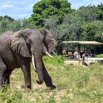 Am mächtigen Zambezi Fluss gelegen befindet sich im Mana Pools Nationalpark das John’s Camp. Hier können Sie im Herzen des Sambesitales die einzigartige Natur bestaunen und vier der fünf "Big Five" in ihrer natürlichen Umgebung erleben. Der zentrale Essbereich, wo Sie ihr Abendessen unter freiem Himmel am Lagerfeuer genießen können, befindet sich in der Mitte des Camps umsäumt von schattenspendenden Bäumen. Darüber hinaus verfügt das Camp über eine erhöhte Aussichtsplattform, auf der Sie tagsüber die Flora und Fauna beobachten, und nachts den Sternenhimmel Simbabwes bewundern können. Sie starten Ihre Safaritage zum Sonnenaufgang und erkunden den Busch zu Fuß oder mit dem Fahrzeug. Alternativ kann am Flussufer geangelt werden. Pro Tag stehen zwei Aktivitäten auf dem Programm. Im Mana Pools Nationalpark sind neben einer Vielzahl von Wildtieren auch über 350 Vogelarten beheimatet.