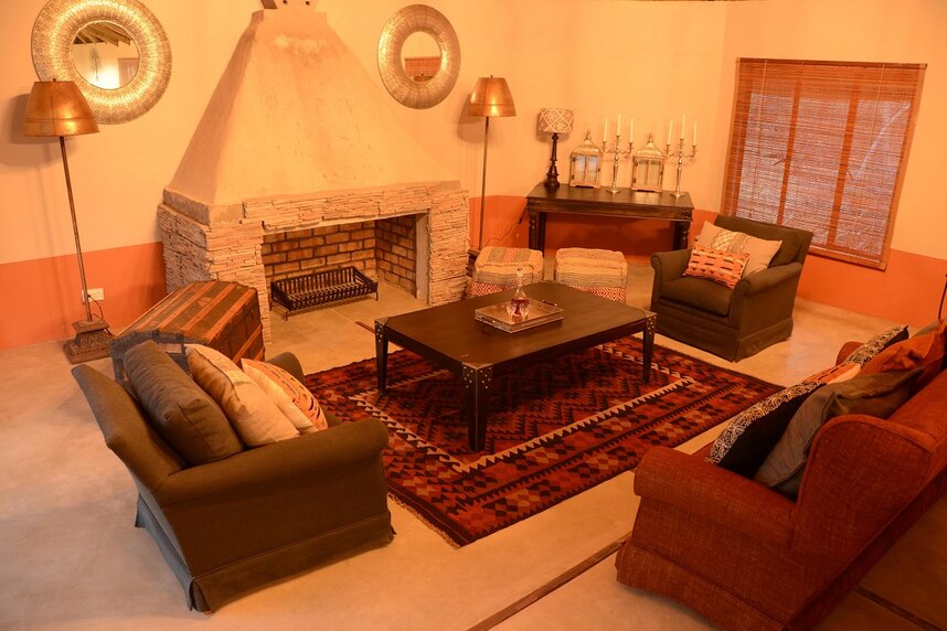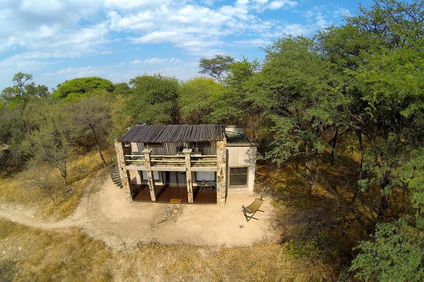 Insgesamt bietet die Camelthorn Lodge acht Waldvillen mit einer Größe von 82 m², die ausreichend Platz für zwei Personen bieten. Die Waldvillen sind feste Unterkunftseinheiten und wurden mit einem Flachdach und Steinmauern errichtet. Sie verfügen über eine Außenmaisonette mit Hängematte, die über eine Wendeltreppe zu erreichen ist. Die Villen sind alle mit einem Kamin, einer private Terrasse sowie einem Dachbalkon und einem Tagesbett ausgestattet. Das private Badezimnmer überblickt die umliegenden Waldflächen.