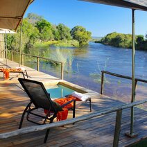 Im westlichen Teil des Zambezi Nationalparks, am Ufer des Zambezi-Flusses und unweit der Viktoria Fälle, liegt das Zambezi Sands River Camp. Durch seine Lage bietet es nicht nur die Möglichkeit herrliche Tier- und Landschaftsbilder zu generieren, sondern stellt auch den perfekten Ausgangspunkt für Ausflüge zu den naheliegenden Viktoriafällen dar. Denn neben den klassischen Safari Abenteuern wie Tages- oder Nachtpirschfahrten und Walking Safaris können Sie auch andere Aktivitäten wie Bootssafaris oder Kanufahren auf dem Zambezi-Fluss, eine Sundowner-Kreuzfahrt oder eine Tour zu den Viktoriafällen unternehmen. Im Hauptzelt befinden sich das Restaurant, die Lounge, eine Bar sowie eine überdachte Terrasse - hier genießen Sie das Abendessen unter freiem Himmel. Des Weiteren bietet das Camp seinen Gästen die Möglichkeit entspannende Massagen zu buchen.