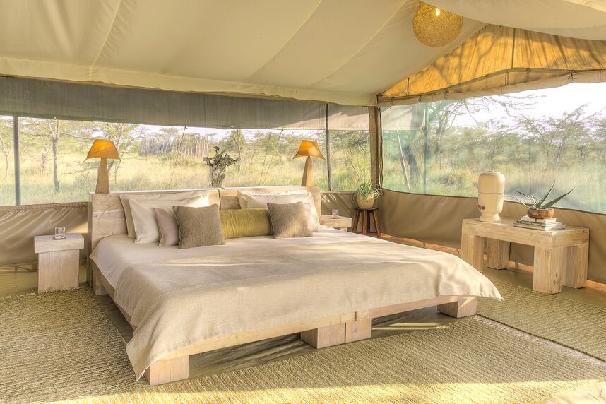 Die sechs stilvoll eingerichteten Safarizelte sind von Akazien umgeben und mit einem Solarbeleuchtungssystem ausgestattet. Zudem garantieren sie höchste Privatsphäre und bieten Ihnen ein eigenes Badezimmer sowie eine private Veranda auf der Sie die Natur und die Tiere Kenias bestaunen können.