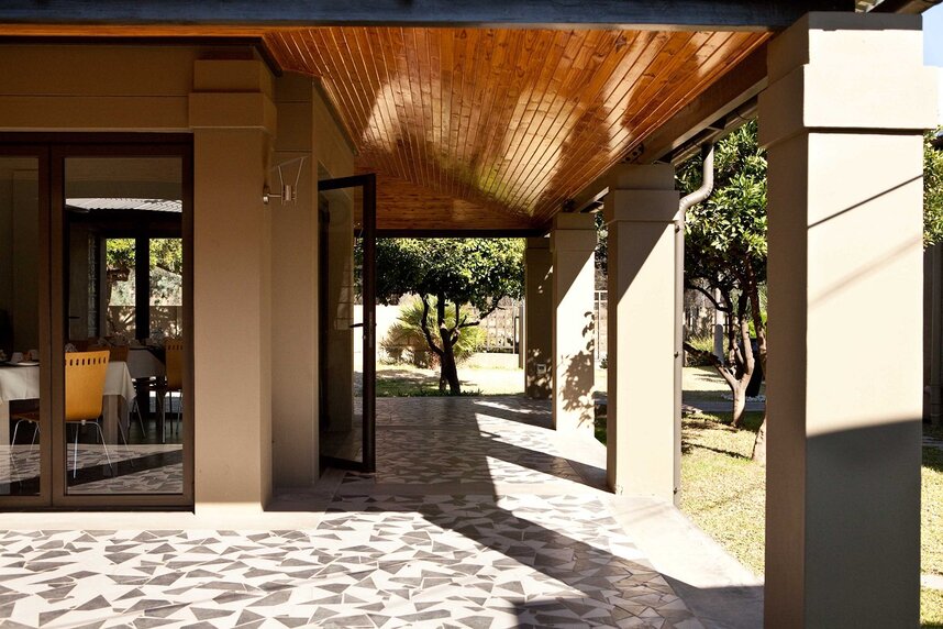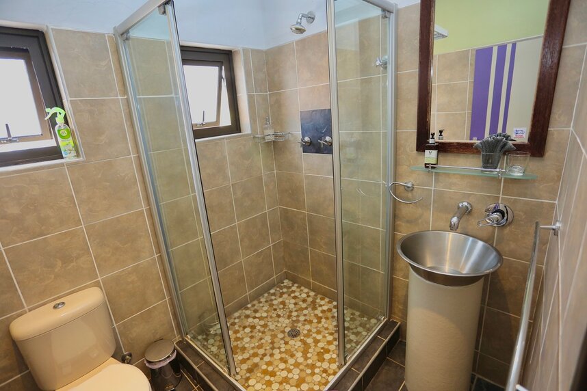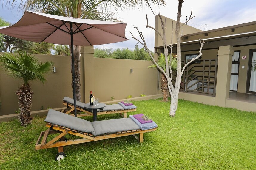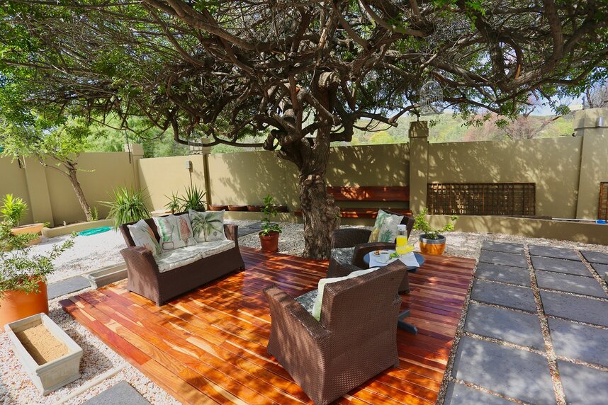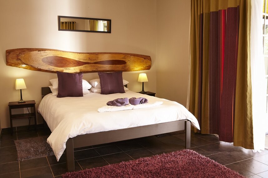 Im Hauptbereich der Unterkunft befindet sich der gemütliche Frühstücksspeiseraum sowie eine kleine Leseecke mit einer interessanten Bücherauswahl. Ein schön angelegter Garten mit kleinem Swimmingpool steht Ihnen ebenso zur Verfügung. Zu den weiteren Annehmlichkeiten gehören eine sichere Parkmöglichkeit, WLAN Verbindung und ein Wäscheservice. Die beiden Besitzer Heidi und Ben sprechen Afrikaans, Englisch, Französisch und Deutsch. Die fünf komfortablen Zimmer sind stilvoll und elegant eingerichtet und haben direkten Zugang zum grünen Garten. Alle Zimmer sind mit en-suite Badezimmer mit Dusche/WC, Klimaanlage/Heizung, Telefon, Flachbildfernseher und kleinem Safe ausgestattet.