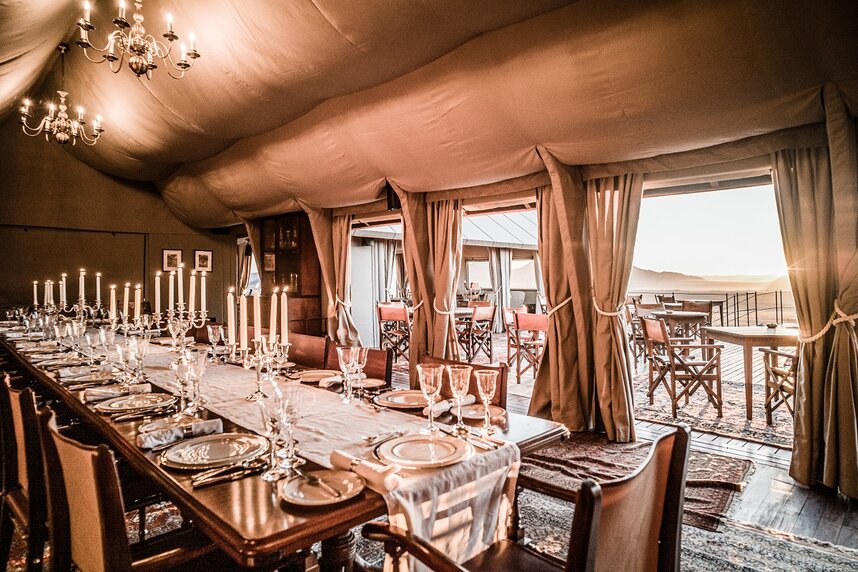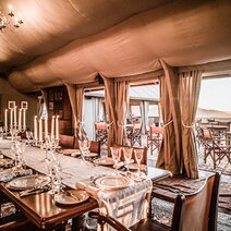 Die geräumigen Luxus-Zelte, die auf Felsblöcken errichtet wurden und mit Antiquitäten aus edlen Materialien, farbenfrohen Teppichen sowie edlem Holz ausgestattet sind, lassen Sie auf eine Zeitreise in die Vergangenheit gehen. Es gibt 8 One-Bedroom Tents (ca. 42 m²) mit separatem Bad, sowie zwei 2-Bedroom Tents (ca. 75 m²) für Familien. Sie können bis zu 4 Erwachsene und 2 Kinder zwischen 6 und 12 Jahren beherbergen. Jedes Zelt bietet traumhafte Ausblicke in die Umgebung und den Sternenhimmel – für exakte Beobachtungen steht sogar ein eigenes Teleskop bereit.