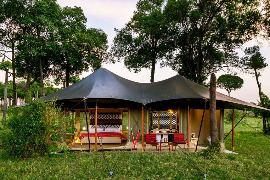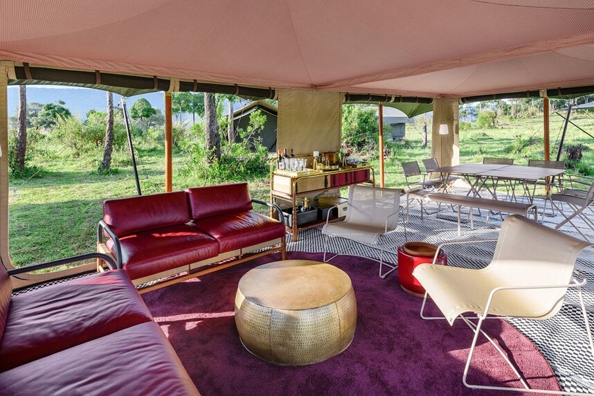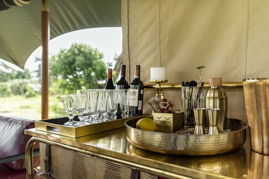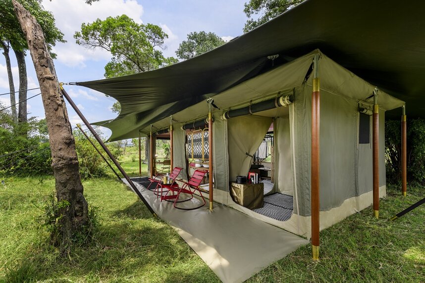Jedes der sehr geräumigen Zelte verfügt über ein Kingsize-Bett, ein WC und eine Eimerdusche. Ein Schreibtisch, ein Ankleideraum sowie gemütliche Schaukelstühle übertreffen jede Erwartung an ein herkömmliches mobiles Camp. Die luxuriöse und geschmackvolle Inneneinrichtung erinnert an das Design des Hauptcamps Angama Mara.