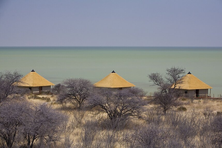 Onkoshi Camp ist ein exklusives Eco-Camp direkt am Rande der charakteristischen Etoshapfanne. Diese ist während der Trockenzeit ausgetrocknet und zieht zahlreiche Flamingos an sobald sie mit Wasser gefüllt ist. Das gewaltige Nichts mit den Luftspiegelungen in der afrikanischen Hitze bildet einen wunderschönen Kontrast zu der artenreichen Tierwelt rund um die Pfanne. Das Camp bietet ein Restaurant und einen großzügigen Pool mit Blick auf die Salzpfanne. Safaris in den frühen Morgenstunden und am Nachmittag bieten ausgezeichnete Fotogelegenheiten, da sich keine anderen Fahrzeuge in der näheren Umgebung befinden. Fernab jeglicher Zivilisation scheinen nachts die Sterne hier extrem hell und begeistern so nicht nur Amateurastronomen. Das Camp ist weit ab von den Selbstfahrerrouten: Gäste werden vom Namutoni Camp abgeholt, welches durch das Von Lindequist Tor zu erreichen ist.