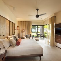 Insgesamt bietet das Hotel 313 modern ausgestattete Einheiten mit Klima anlage, Deckenventilator, Kaffee-/ Tee zubereiter, Minibar, Safe, Haartrockner, LCD-TV, Apple Mac Mini Entertainment System mit iPod-Zugang und Video on Demand, kostenlosem WLAN, Bad mit separater Dusche und Balkon oder Terrasse. Die 184 Junior Suiten (ca. 62 m²) gruppieren sich um vier Swimmingpools im Hauptteil der Anlage am South Beach. 40 Senior Suiten (ca. 72 m²) sind bei gleicher Ausstattung etwas geräumiger und verfügen über eine Nespresso-Maschine. Ein Teil der Suiten sind mit Verbindungstüren buchbar und eignen sich ideal für Familien. Die 16 Beach Villen (ca. 240-370 m², ein oder zwei Schlafzimmer) liegen nahe dem North Beach. Mit herrlichem Ausblick wurden hier auch 8 Hillside Villen am Hang erbaut (ca. 120-220 m², ein oder zwei Schlafzimmer). Die Beach und Hillside Villen verfügen neben einer Minibar auch über einen Weinklimaschrank und eine Pergola. 22 Familien Villen (ca. 330-350 m²) haben zwei oder drei Schlafzimmer. Alle Villen verfügen über einen privaten Pool und einen Garten. Den Gästen der Hillside Villa steht während des Aufenthaltes ein Club Car kostenfrei zur Verfügung.