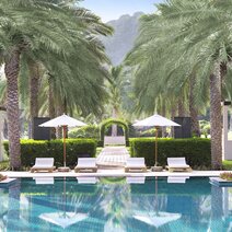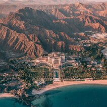 Mehr Institution, als einfach nur ein Hotel und mehr Wahrzeichen, als einfach nur ein Palast, ist der weltberühmte Al Bustan Palace - geführt von der Edelmarke Ritz-Carlton. Eingerahmt von den Ausläufern des zerklüfteten Hajar-Gebirges direkt am Golf von Oman präsentiert sich diese Nobeladresse als Strandhotel für höchste Ansprüche in malerischer Umgebung unweit des Zentrums von Muscat. Sobald Sie die prachtvolle, 38 Meter hohe Eingangshalle zum ersten Mal betreten, atmen Sie nicht nur die von Weihrauch geschwängerte Luft, sondern auch die ganze Atmosphäre eines orientalischen Märchens ein. Nach umfangreichen Renovierungsarbeiten erstrahlt der Al Bustan Palace seit Herbst 2018 noch dazu in völlig neuem Glanz und setzt damit neue Maßstäbe in puncto Design, Ästhetik und Exklusivität. In drei Restaurants mit jeweils großzügigem Außenbereich kommen anspruchsvollste Feinschmecker auf ihre Kosten: Der "Beach Pavilion" verwöhnt seine Gäste direkt am Strand mit frischem Sea-food und Grillspezialitäten, das "China Mood" kredenzt feinste chinesische Küche und das "Al Khiran" überzeugt mit internationalen Spezialitäten. Neben dem Privatstrand des Hotels verspricht eine gigantische Poollandschaft eine willkommene Abkühlung. Besonders empfehleswert ist eine Massage oder Anwendung im exklusiven Six Senses Spa. Darüber hinaus stehen vier Tennisplätze und ein modernes Fitnesscenter zur Verfügung.