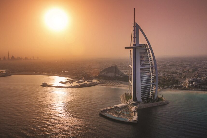 Burj Al Arab – eine Ikone und ein Wahrzeichen, welches wohl mehr für den unaufhaltsamen Aufstieg Dubais zu einer Weltmetropole der Superlative steht, als jedes andere. 280 Meter vor der Küste ragt das segelförmige Nobelhotel auf einer künstlichen Insel, die durch einen eigenen Damm mit dem Festland verbunden ist, in die Höhe. Erbaut mit dem Anspruch, das beste Hotel der Welt zu erschaffen, setzt das Burj Al Arab völlig neue Maßstäbe in puncto Luxus und Exklusivität. Von der atemberaubenden Empfangshalle mit ihren Aquarien und Wasserspielen zu Hermes-Artikeln in Originalgröße für jede einzelne Suite bis hin zur 10.000 Quadratmetern großen Burj Al Arab Terrace – einer 100 Meter in den Ozean ragenden Pool-Landschaft mit Restaurant und Bar – hier bleiben keine Wünsche offen.