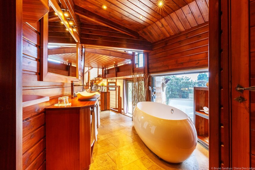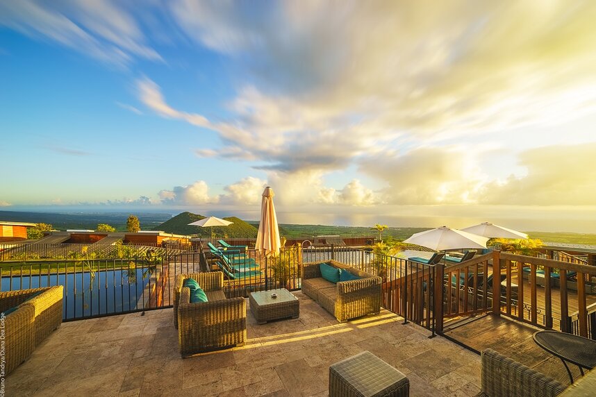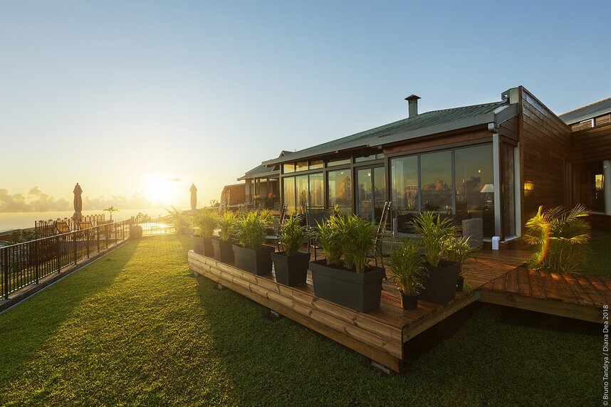 In spektakulärer Hanglage nahe Sainte-Anne liegt die Diana Dea Lodge, welche sich perfekt in die umliegende Natur schmiegt. Sie ist ein idealer Ausgangspunkt für Ausflüge zum Piton de La Fournaise, den Talkessel von Salazie oder in den Primärwald von Belouve. Nach einem erlebnisreichen Tag verwöhnt das Restaurant mit feinsten Gerichten der lokalen und französischen Küche sowie einem einmaligen Blick über den Naturpark und den Indischen Ozean. Lassen Sie sich bei einer von vielen Anwendungen im Spa verwöhnen und entspannen Sie im Swimmingpool mit herrlichem Ausblick. Der Kamin in der Lounge wärmt an kalten Tagen und bietet den idealen Platz, um es sich mit einem Buch aus der kleinen Bibliothek gemütlich zu machen. Das Spielzimmer lädt Sie zu einer Partie Billard ein.