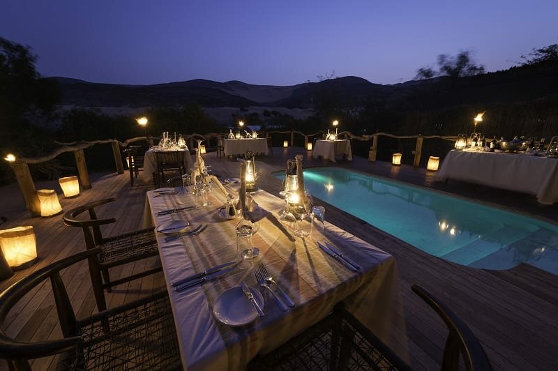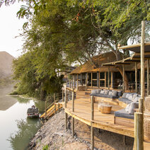 Serra Cafema ist eines der exklusivsten Wilderness Camps in Namibia und liegt am Ufer des Kunene Flusses. Die Oase der Ruhe verdankt seinen portugiesischen Namen der Gebirgskette, die den Norden dominiert. Fur naturverbundene Afrika Liebhaber wird ein Besuch dieser spektakularen Wildnis zu einem besonderen Erlebnis. Die einzigen Bewohner hier sind die gastfreundlichen und stattlichen Himba Nomaden, die zu den letzten Naturvölkern Afrikas gehören. Das renovierte und umgebaute Camp verfügt über einen offen gehaltenen Hauptbereich mit Indoor- und Outdoor-Restaurant, Bar, Lagerfeuerplatz, Aussichtsplattform, kleiner Bibliothek sowie offenem Kamin und bietet einen prachtvollen Blick auf den Fluss. Erfrischung an heißen Tagen bietet der Pool und für das körperliche Wohlbefinden sorgen Massagen und Anwendungen. Aufgrund der abgeschiedenen Lage sind im Übernachtungspreis Vollpension sowie lokale Gtränke inkludiert.