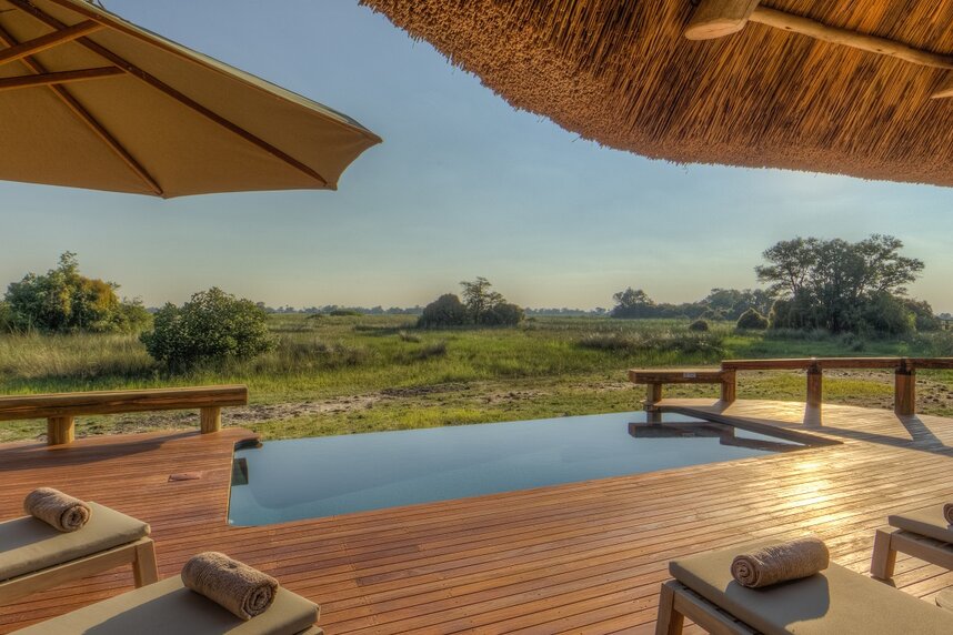 Das exklusive Camp liegt auf der Insel Nxaragha im Herzen des Okavango Deltas. Es ist umgeben von Schilf, Papyrus und Wasserwegen. Abhängig von der Jahreszeit können Sie sich zusammen mit einem Guide des Camps zu Fuß auf die Fährte von Wild- und Raubtieren begeben, oder die Flora und Fauna der angrenzenden Inseln in einem traditionellen Mokoro oder im Motorboot kennenlernen. An den offenen Wasserstellen und am Ufer der Kanäle gibt es auch die Möglichkeit zu Angeln.