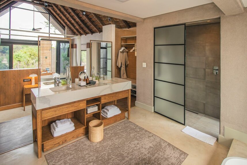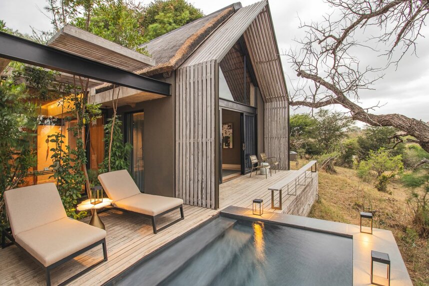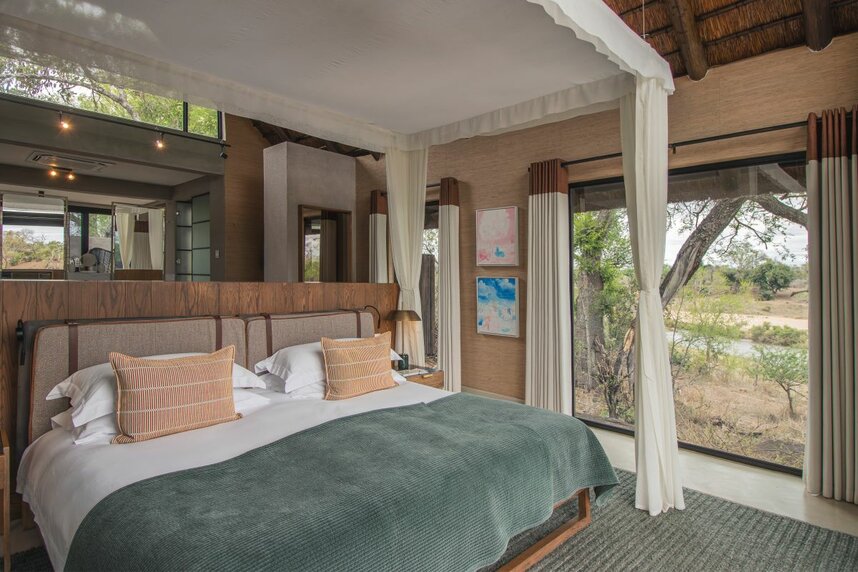 Die acht exklusiv ausgestattete Suiten (173 m²) bieten sehr viel Privatsphäre, ein separates Wohn- und Schlafzimmer, eine Lounge mit Kamin sowie Bad mit Außendusche. Von Ihrer privaten Veranda mit Pool genießen Sie einen spektakulären Ausblick über den Sabi River, sodass Sie schon von Ihrem Bett aus Tiere beobachten können. Zusätzlich gibt es noch eine Villa mit zwei Schlafräumen (440 m²).