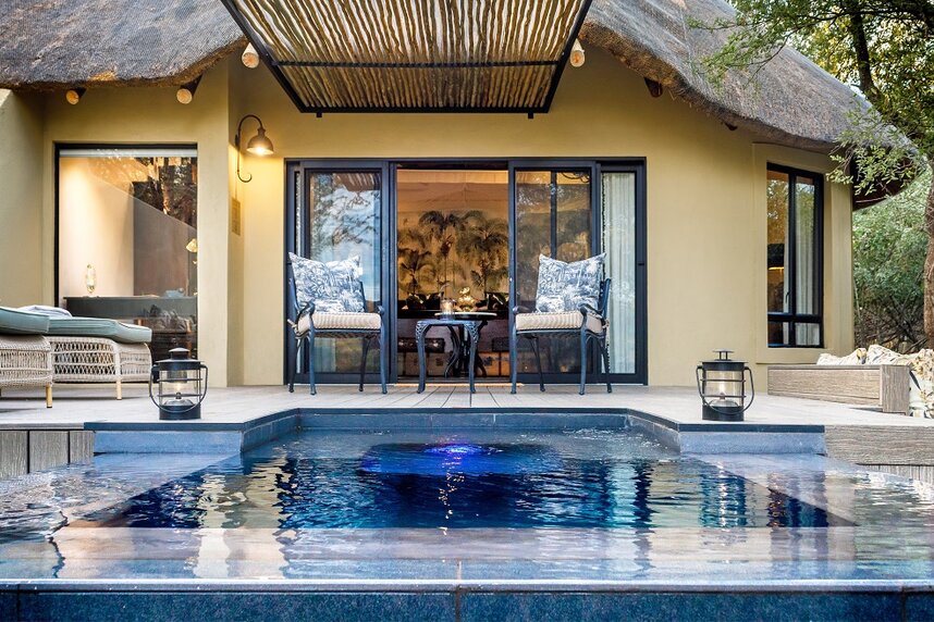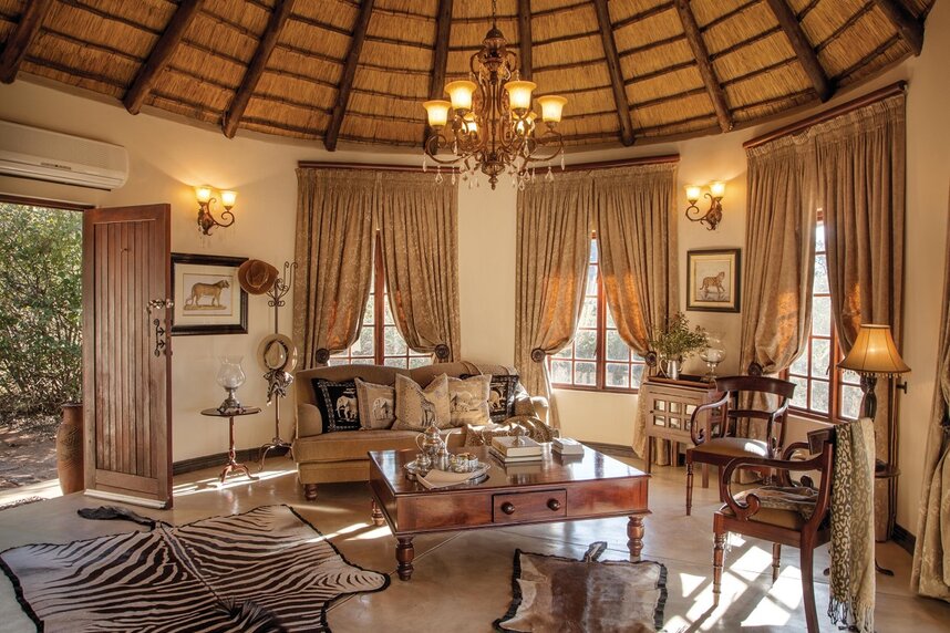 Das exklusive Camp befindet sich im nordöstlichen Teil des Timbavati Reservats, in dem immer wieder seltene weiße Löwen vorkommen. 147 Säugetierarten sind in der savannenartigen Landschaft gezählt worden, inklusive vier Großkatzenarten. Ein Wasserloch gleich neben dem Camp lockt sowohl zu Tages- als auch Nachtzeit viele Tiere an, was einzigartige Tierbeobachtungen ermöglicht. Fußpirsch und Pirschfahrten sowie ein Buschdinner in der unberührten, afrikanischen Wildnis werden zu unvergesslichen Safarierlebnissen. Zur Lodge gehören neben dem Essbereich auch eine Bar, Lounge, Pool mit Terrasse, Fitnessstudio und Spa sowie eine Bibliothek. Von der Terrasse mit Aussichtsplattform überblicken Sie ein nahegelegenes Wasserloch. Feinste Gastronomie und aufmerksamer Service runden das Angebot ab.