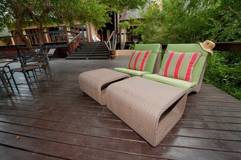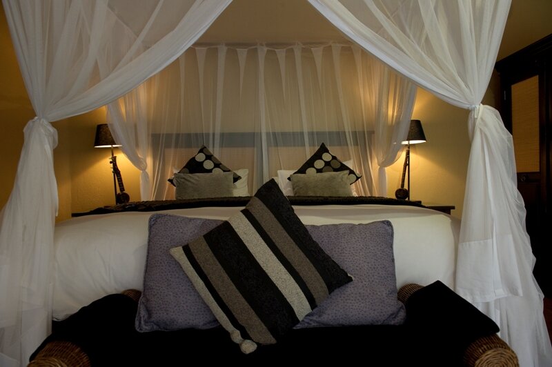 Die attraktive Lodge bietet fünf komfortable, reetgedeckte Chalets, sogenannte Rondavels, mit Klimaanlage. Die sechs Suiten verfügen zusätzlich über ein Wohnzimmer und eine Terrasse mit wunderschönem Ausblick über den Fluss.