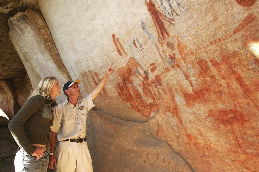 Als südafrikanische Weltkulturstätte mit über 130 historischen Felsmalereien der San-Buschmänner zählt Bushmans Kloof zu einem der weltgrößten Freiluft-Museen. Von der Lodge aus können Sie geführte Touren zu den Malereien unternehmen.