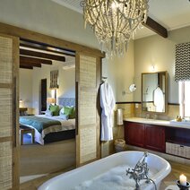 Die sechs stilvollen Suiten haben alle eine eigene Lounge und sind jeweils mit einzigartigen semi-offenen Freiluftduschen, einer freistehenden Badewanne, einer privaten Veranda mit Blick auf die Ebene und die umliegenden Berge, als auch einer eigener Feuerstelle ausgestattet.