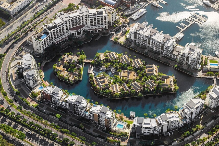 Von den 131 Zimmern (ab 63 m²) liegen 91 im Hauptgebäude. Die 40 Island Suiten gruppieren sich rund um den 350 m² großen Pool auf einer der hübsch angelegten Inseln. Klare Linien, moderne Kunst und dunkles afrikanisches Holz prägen die Zimmer und Suiten mit modernster Ausstattung. Jedes verfügt über ein Marmorbad mit Regendusche und separater Badewanne, Kaffee- und Teezubehör sowie TV. Alle bieten Blick auf den Tafelberg oder den Hafen.