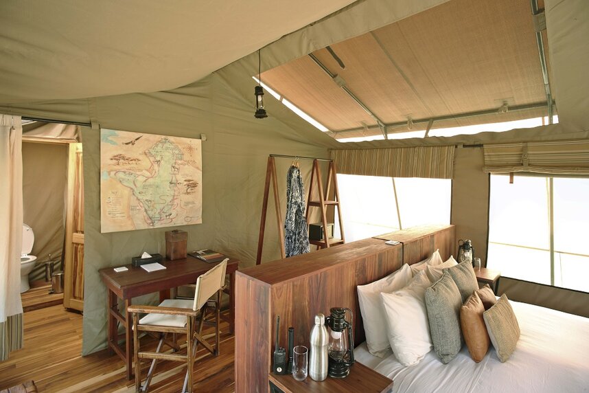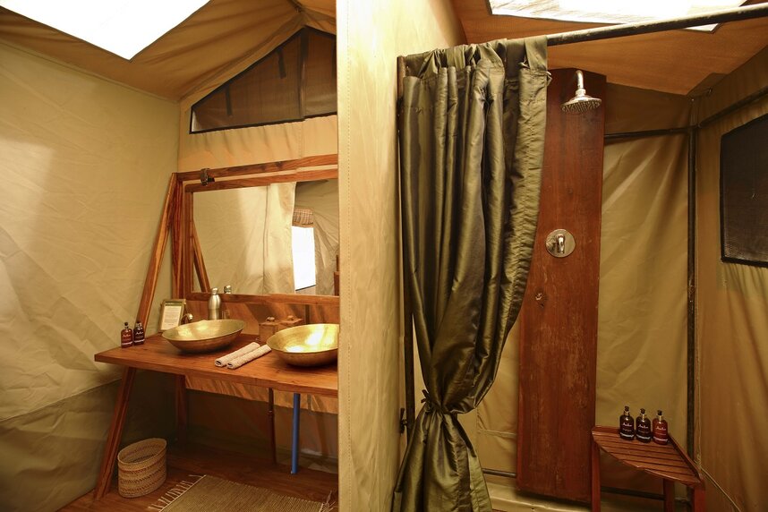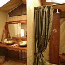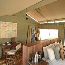 Das Camp besteht aus neun geräumigen Zelten mit WC und Buschdusche und garantiert damit ein authentisches Bush-Feeling. In einem separaten Bereich Ihres Zeltes können Sie die Nacht unter dem Sternenhimmel der Savanne verbringen.